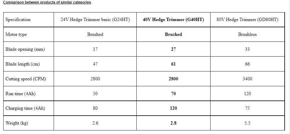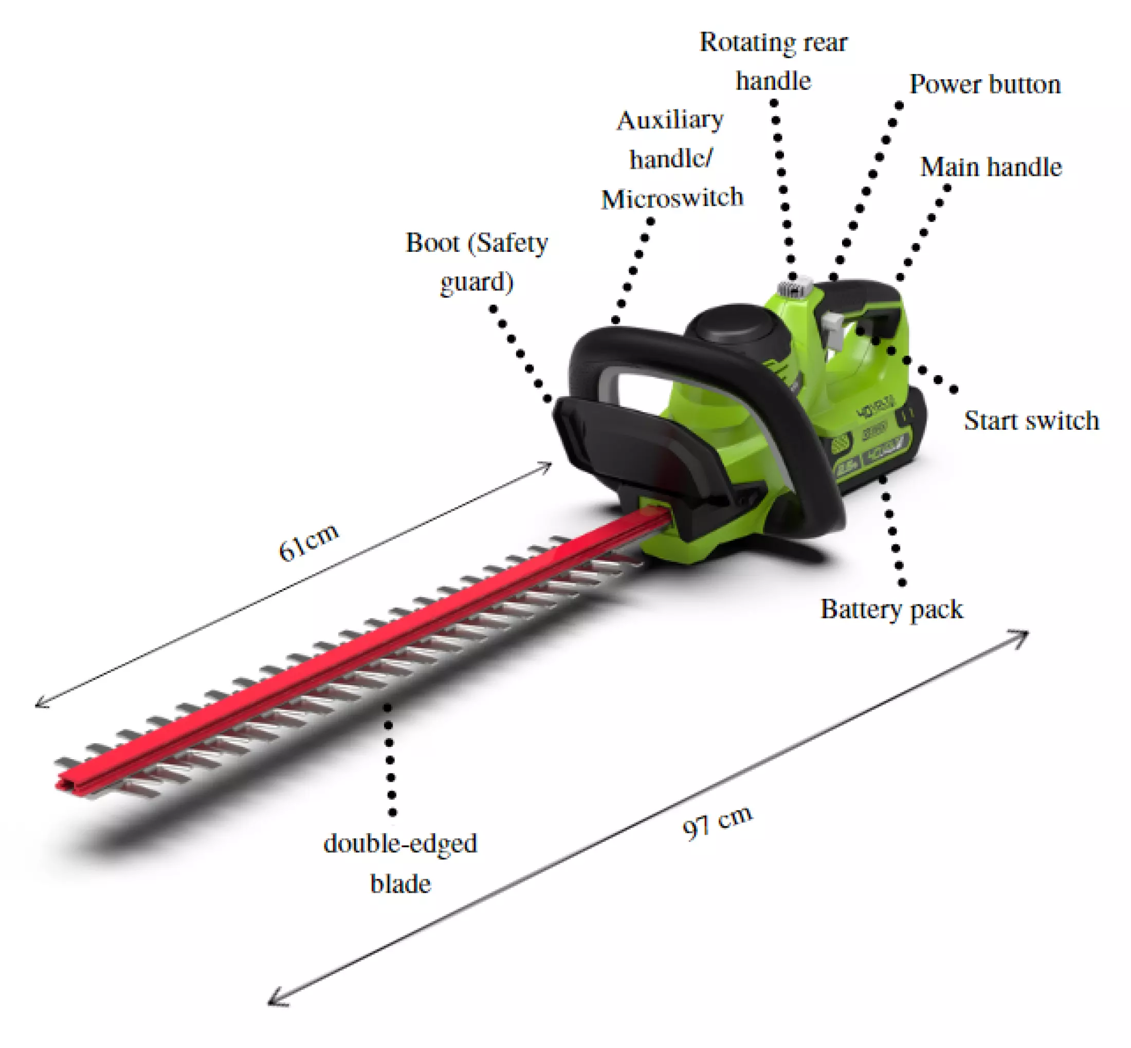 - Greenworks G40HT is a semi-professional model with a cutting blade length of 61 cm.