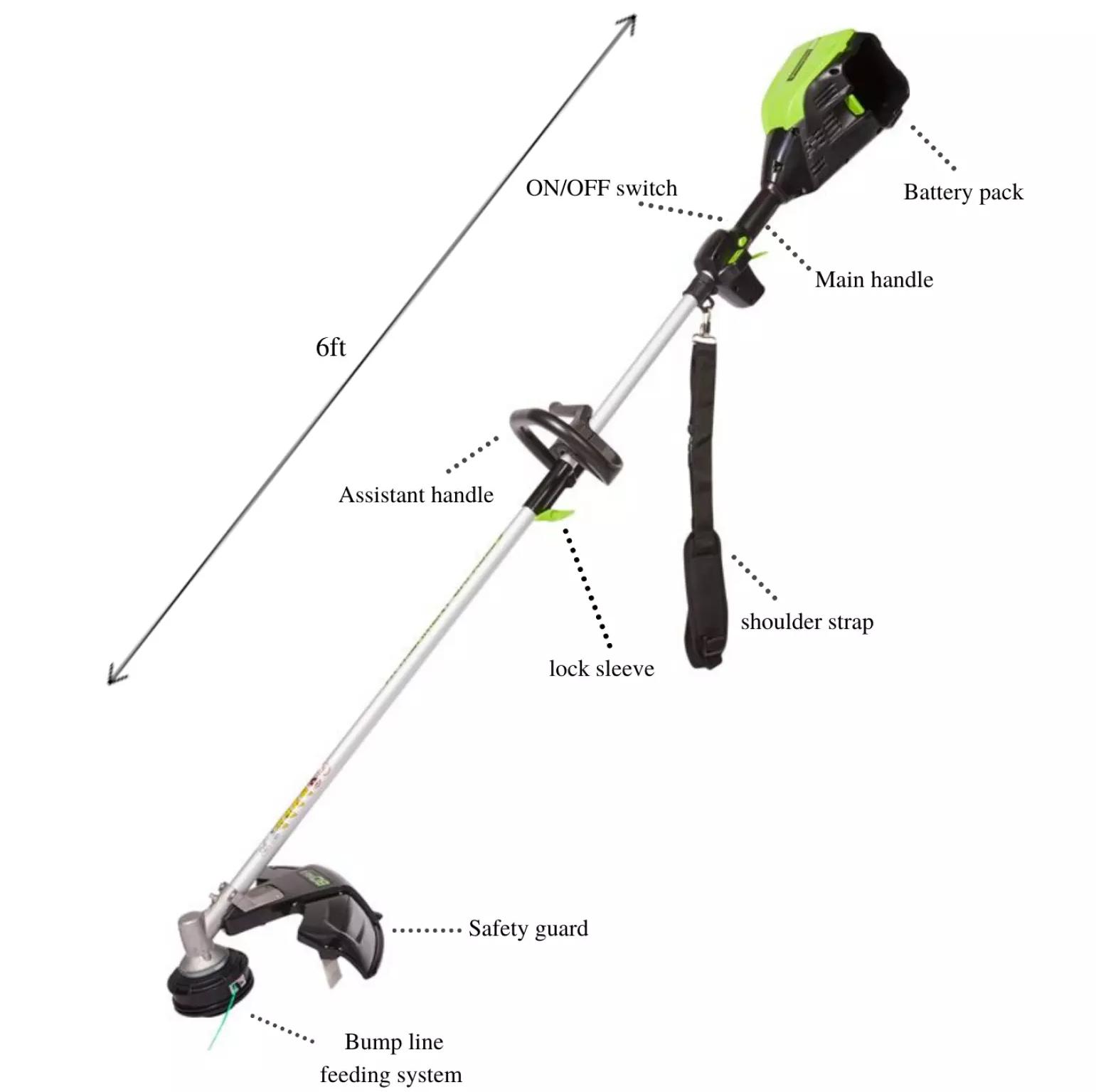 - GD80BC has a split boom design which accepts most gas attachment that includes 14/16 inches string trimmer bump feed attachment.